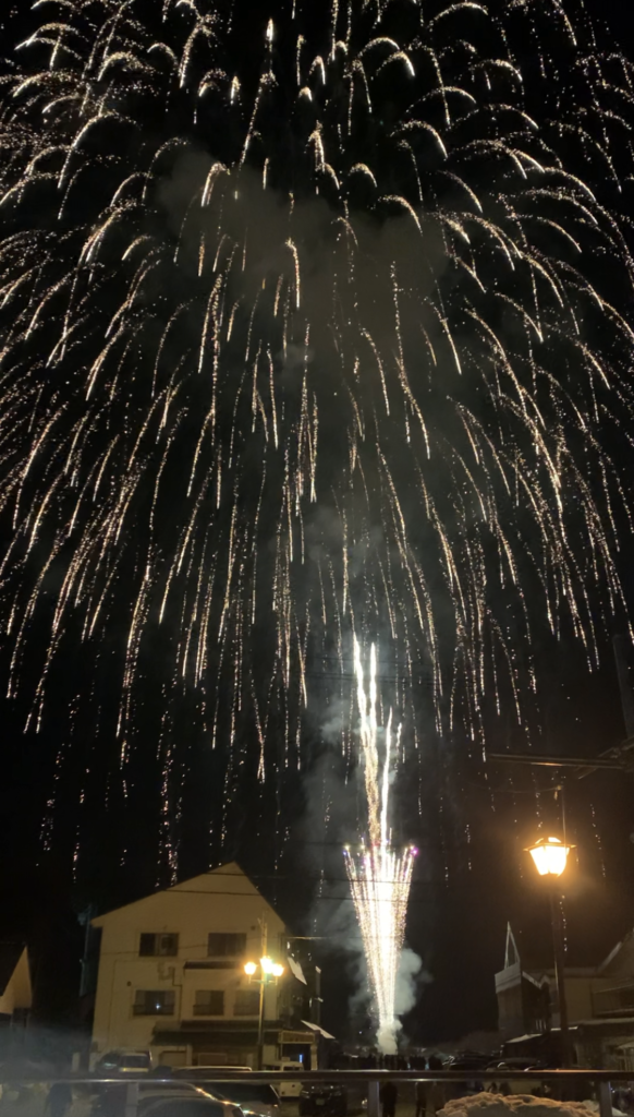 2月3日・2月10日・17日・24日の20時から開催。勇壮な和太鼓(大町流鏑馬太鼓&津軽三味線ふぞろいの林檎たち(2/3)・信濃国松川響岳太鼓(2/10、2/24)・源流美麻太鼓(2/17))と花火の競演。 とても贅沢な時間を過ごさせて頂きました! 是非皆様もお越しください!!
